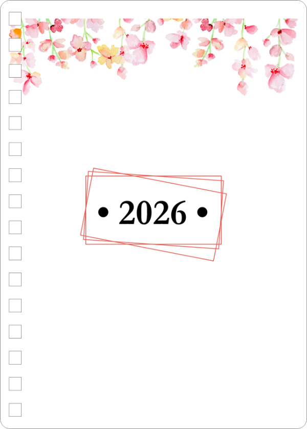 - Miolo com 264 páginas, incluindo dados pessoais, calendários 2026 e 2027, contatos importantes, roda da vida, metas, planejamento, controle financeiro e agenda semanal. Disponível em papel Offset 75g/m².